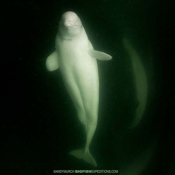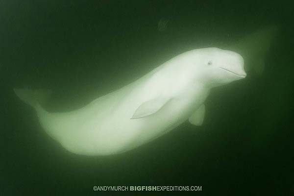 Fortunately for those in our group that were not experienced free-divers, even at the surface, some of the whales came extremely close so they were able to get a good look at them through the misty water. It is quite a surreal experience to float on the surface and watch a beluga materialize right in front of you!