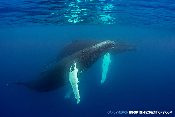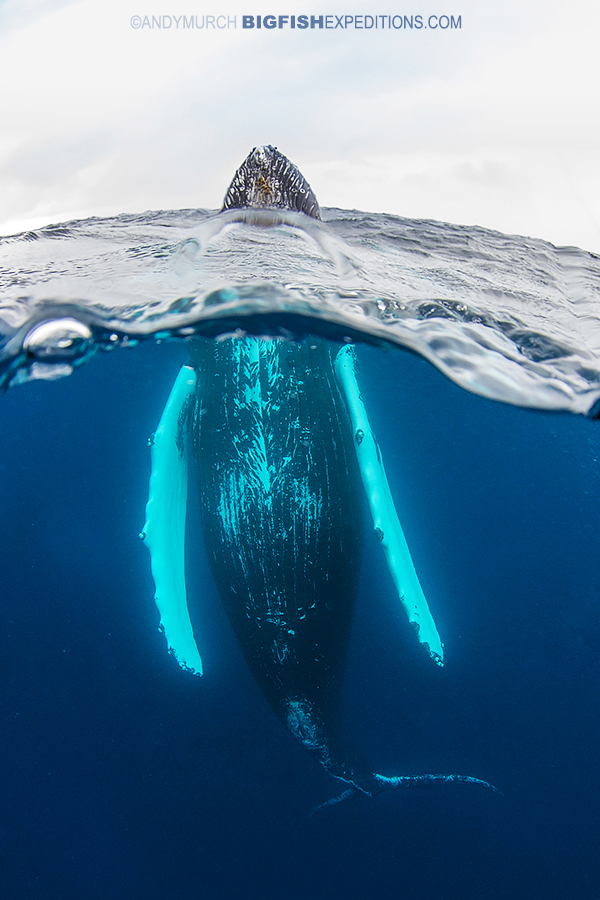 Next up were the sleeping giants. A great way to get close to humpback whales is to slip into the water when they’re resting. During their afternoon naps, humpies surface to breath every 18-20 minutes. When they settle back down they don’t go very far so its easy to catch up with them and then watch them laying motionless on the shallow sandy seafloor. As long as you’re quiet, you can fin along next to them when they finally surface for their next breath. It’s a wonderfully peaceful way to spend lots of time in their presence.