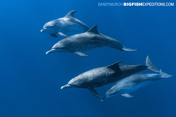 After we jumped on a couple of small feeding events, we ran into a pod of dolphins. As beautiful as they are, dolphins are generally bad news when you’re looking for sailfish because they break up the balls. Fortunately, these weren’t bottlenose dolphins. They were Atlantic spotted dolphins; a playful species that love to interact with humans so we jumped in and tried to keep up as they ran circles around us.
