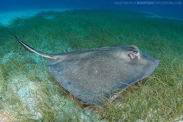 Other noteworthy elasmobranchs (sharks and rays) included a handful of southern stingrays. I am always amazed how these large ‘flat sharks’ swim nonchalantly among the big boys, even though they would be easy pickings for the tigers and they’re a favorite food of the great hammerheads.