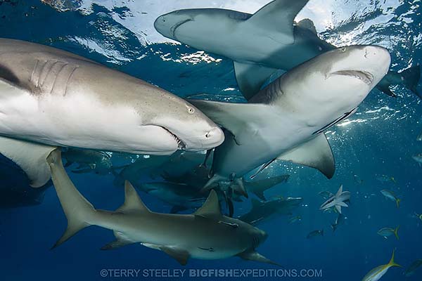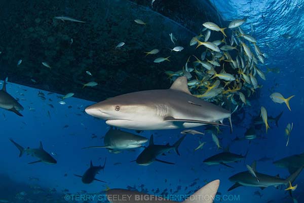 Large numbers of tiger sharks are clearly the star of the show, but it would be a crime to miss out on the other fabulous encounters that the Bahamas can offer. Caribbean reef sharks remain a firm favorite amongst the group. Their sleek torpedo shaped bodies and rapid turn of speed establish them as an iconic shark and a real crowd pleaser.