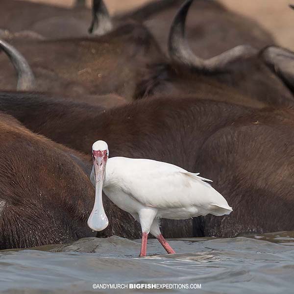 As well as hundreds of mammals, the river is a great place to photograph exotic birds like this spoonbill.