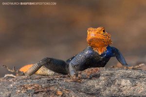 The top of the Falls is a great place to look for yellow headed agama lizards; an endemic species only found in Uganda.