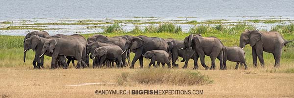 African Elephant herds in Murchison Falls can be huge. We have seen more than 100 individuals moving nose-to-tail along traditional migratory routes.