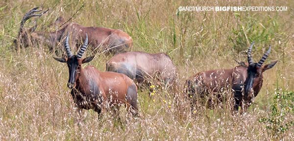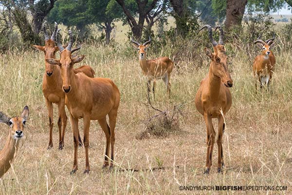 We drove south from Queen Elizabeth to Bwindi. On the way we came across a herd a Topi. A black faced antelope that looks a lot like a hartebeest.