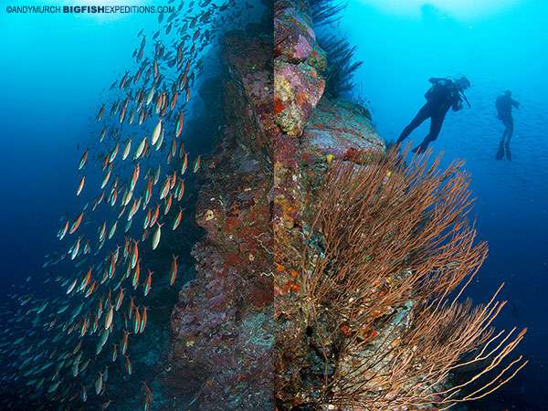 At the edge of the bay where we stayed, we dove at a spot named The Sentinel. It was barely a mile from the village but it was a great spot to dive with scalloped hammerheads. I have never seen hammers so close to civilization. I have also never managed to get so physically close to scalloped hammerheads but these ones actually seemed interested in us and made very close approaches.