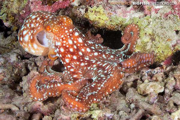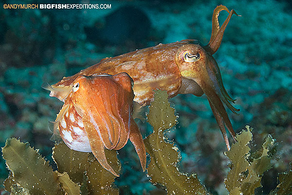 Super mollusks were all over the place. We bumped into broadclub cuttlefish on multiple dives and blue-ringed octos too. On our night dives we also saw a starry-night octopus and a tiny algae octopus that I could never have found without the eagle eyes of our attentive guides.
