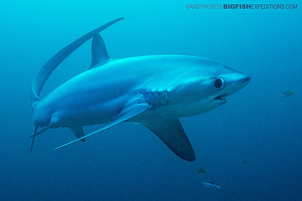 This year was the best I have seen for pelagic thresher shark action. We were lucky enough to dive with thresher sharks every single morning and some of them stayed with us for the entire dive. It was quite amazing to see such normally illusive sharks up close for so long.