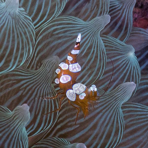 I was not really prepared for macro photography so my images leave a bit to be desired but here is pretty little anemone shrimp to give you an idea of what we saw.