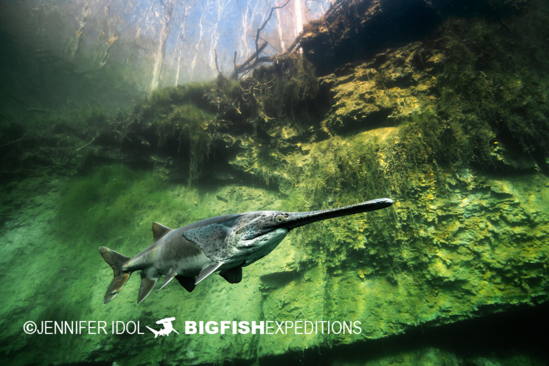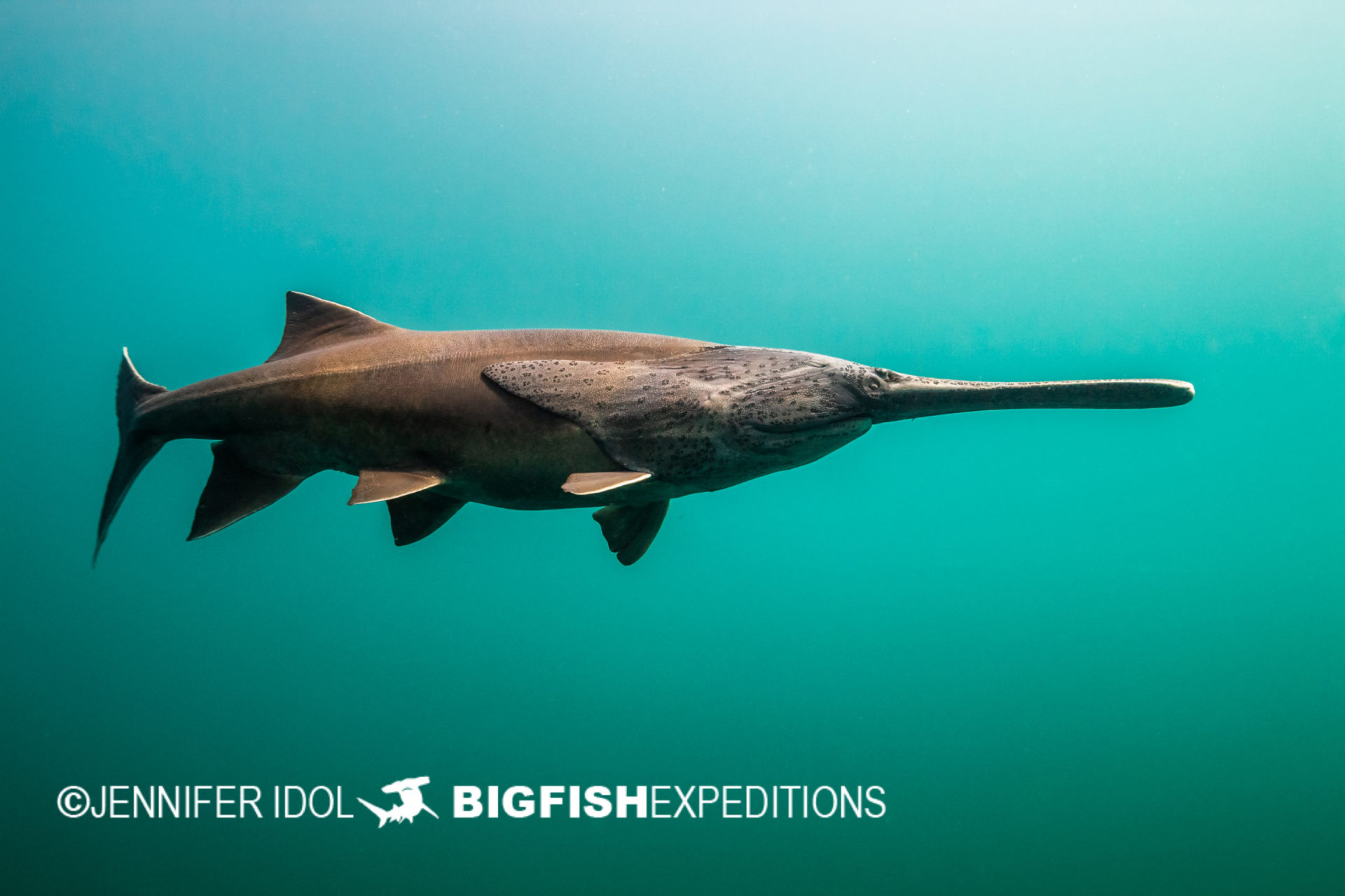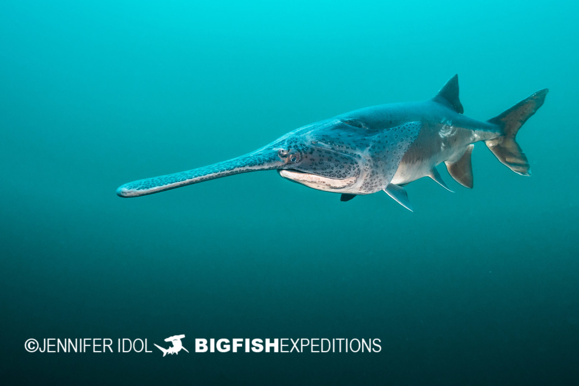We added a day to this year’s itinerary to allow more time with the paddlefish. They tire of people’s presence, so we limit dives to two a day to give the best encounters and to allow everyone time to warm up. However, no one in the group tired of seeing paddlefish. Everyone saw paddlefish on every dive. As always, photographic opportunities were challenging; the paddlefish swam vigorously, while I focused on creative compositions.