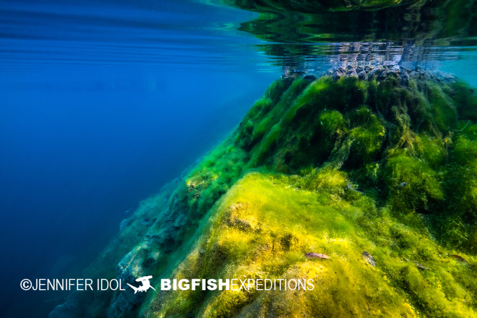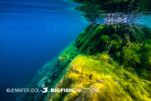 The first day proved the best for visibility due to the aggregation of freshwater copepods that spread out across all depths. The best visibility was from the surface down to 15 feet and below 40 feet. Our maximum depths were 60 feet, but we rarely needed to venture that deep because the fish fortunately enjoy shallower water unless provoked to dive deep.