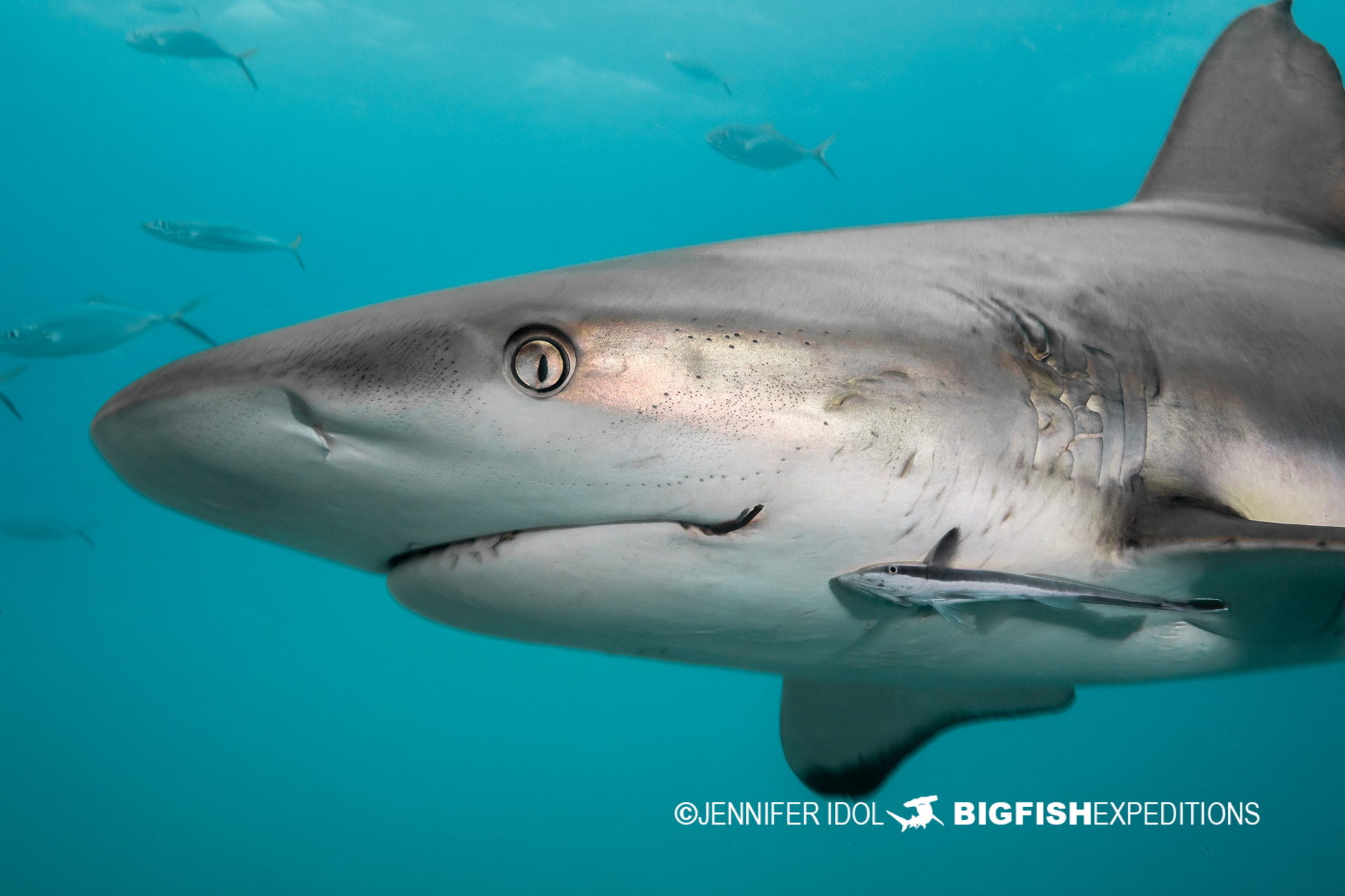 It’s possible to see up to six species of sharks on our tiger shark trips. Tiger sharks are the reason we come, but the lemon and reef sharks make for ample photographic opportunities. They behave differently and are still exciting sharks to swim with. Nurse sharks are nearly always present and challenging to get close to. Bull sharks and hammerhead sharks are the rarest of the species on the reef, but exciting when we can see them. With the reduced visibility from the weather on a few of our dives, we had the opportunity to get very close to some of these other shark species and take some less common shots.