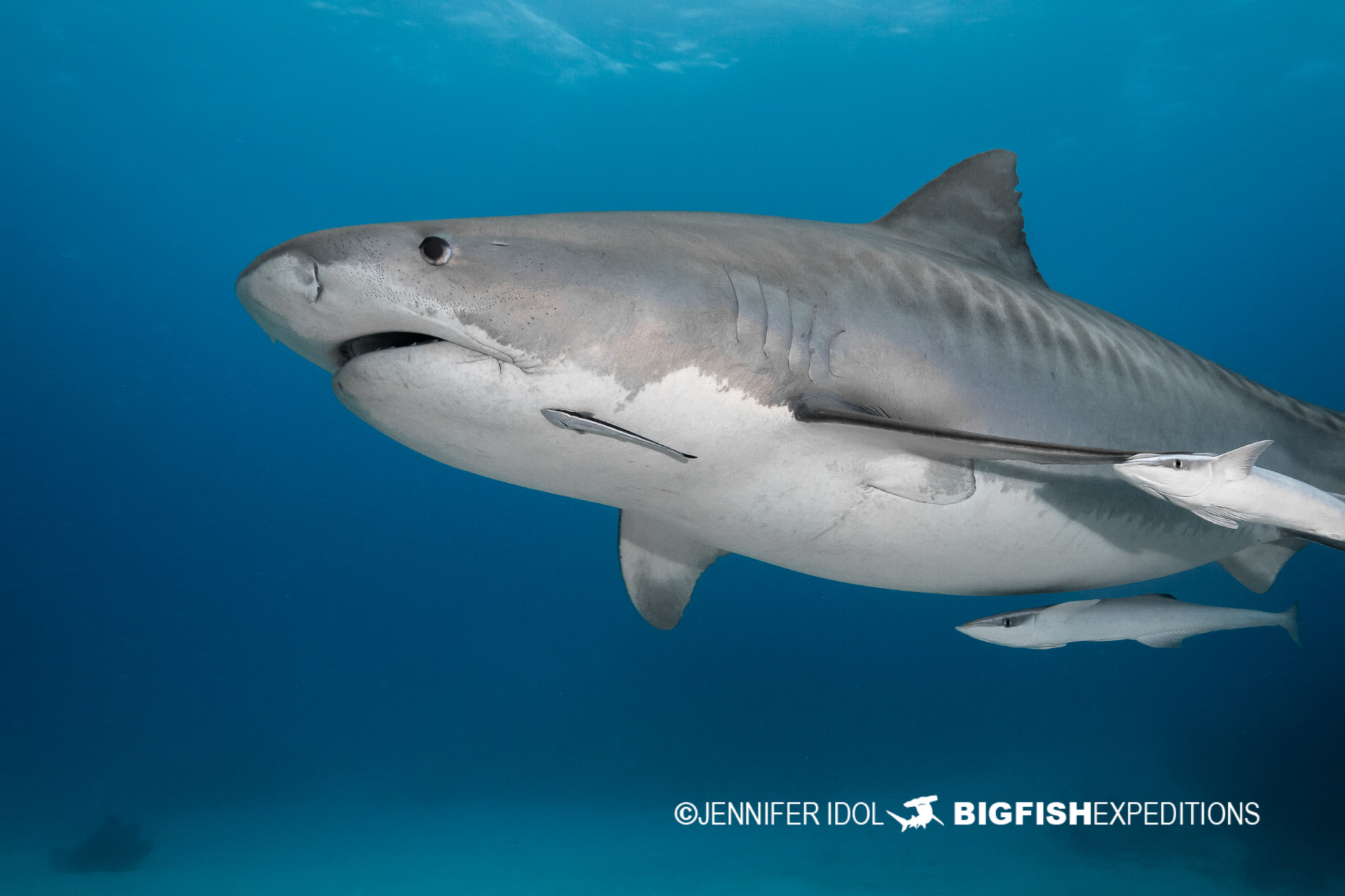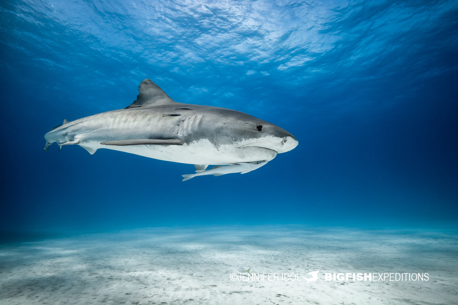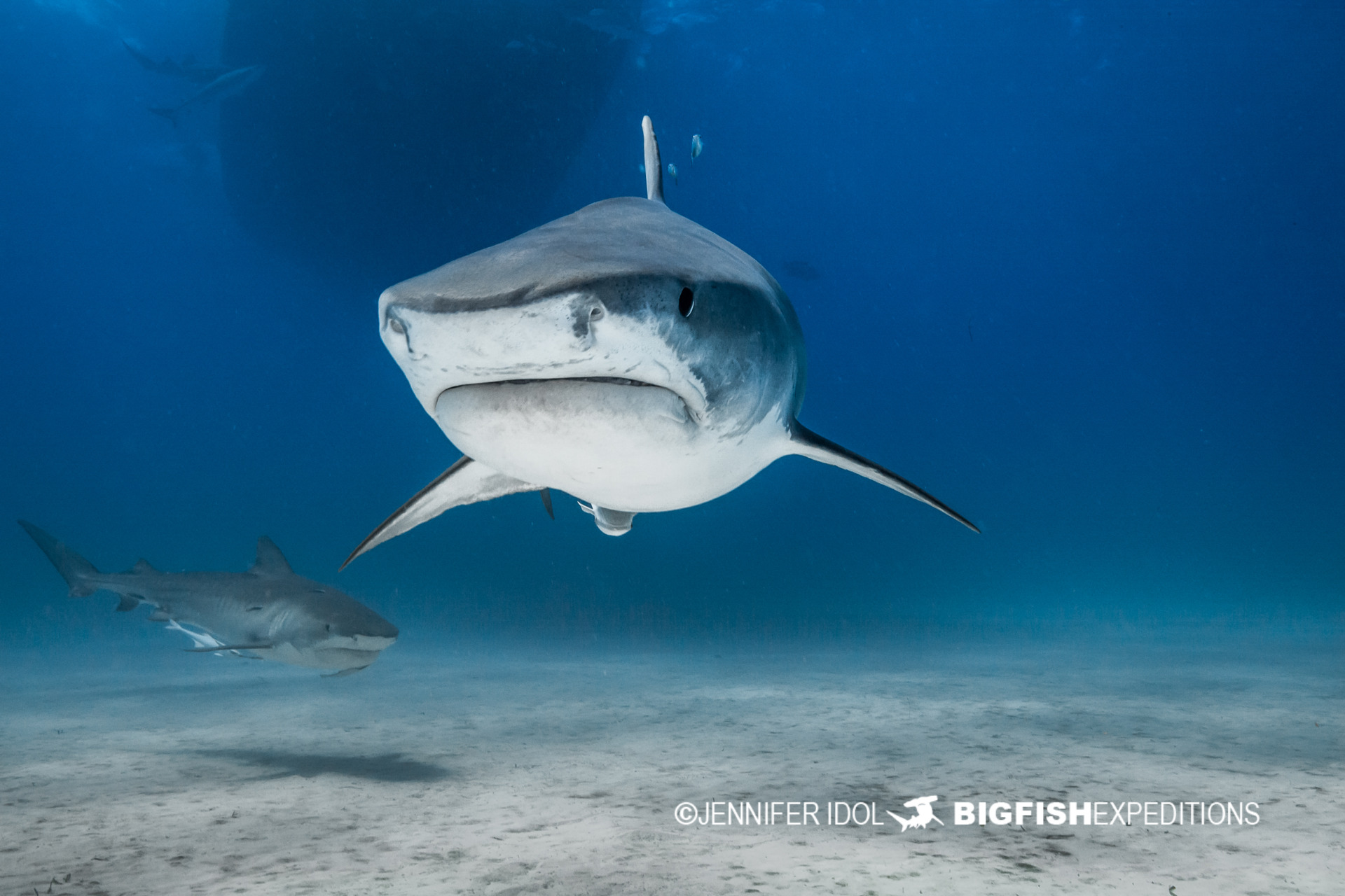 We anticipated tough weather this year when the week’s forecast predicted high winds and rain. However, the Bahamas is a wild place and you never know what to expect. We begin on a shallow reef with tropical subjects to ensure everyone was comfortable in the water with their equipment before heading to Fish Tails to find some tiger sharks. When we arrived at Tiger Beach, we saw seven tigers waiting for us!