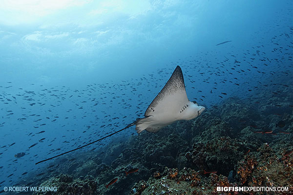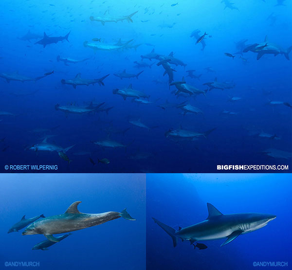 The island hosts numerous world class wall dives. Expect fast drifts among schooling pelagics including schooling scalloped hammerheads, galapagos sharks and whitetips. Divers should also be on the lookout for red-lipped batfish, baracudas, moray eels and dolphins!