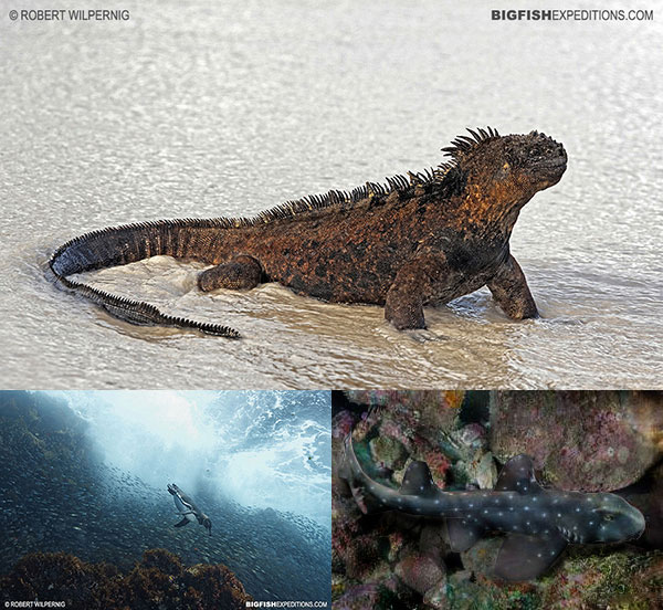 Scuba diving with sharks, mola molas, turtles and marine iguanas