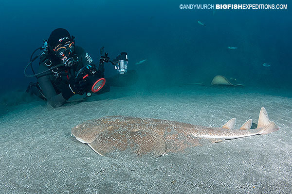 Join Shark Photographer Andy Murch on Honshu Island to dive with hundreds of swirling Banded Houndsharks, plus Japanese Hornsharks, Japanese Angelsharks, Japanese Wobbegong Sharks, and many endemic ray species. Divers may also see Cloudy Angelsharks, Blotchy Swellsharks, and iconic pelagics such as Scalloped Hammerheads and Oceanic Blacktip sharks.