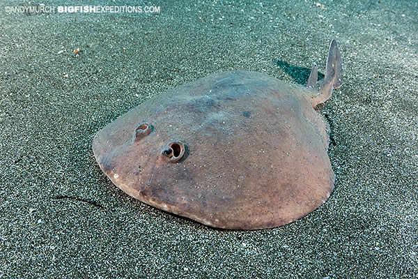 Perhaps even more abundant than the banded houndsharks, you will probably be bombarded by scores of red stingrays during the shark feeds in Chiba. Armed with sharp tail spines, these rays show up in droves hoping to sneak a scrap or two. Fortunately, they never use their barbs on divers unless you accidentally land on one!